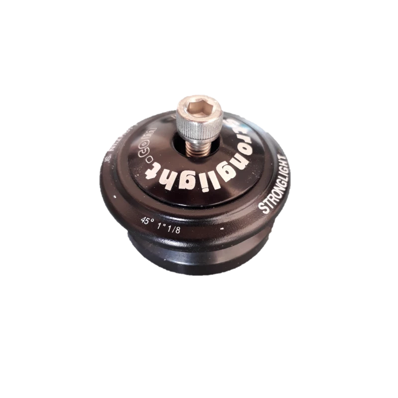 Jeu de direction Stronglight Light’in, intégré, couleur noire, pour un pivot de fourche lisse diamètre 1″1/8 (28.6 mm), cartouches de roulements étanches en acier de 45 / 45°, hauteur 6.7 mm, poids 99 grammes. La butée de fourche, l’étoile et le capot sont fournis. Ce jeu de direction est neuf dans son emballage.